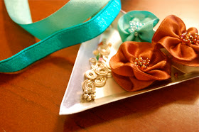Some days I wake up feeling creative! Some days, it doesn't happen. On those days I step into my workspace and start perusing my materials: colorful fabrics and beads, photos, paints, glitter and ribbon, to list a few. Sometimes a jolt of color gets me going, but truth be told, there are days when I waste time doing mom things and before you know it, the day is over! Last night I did feel inspired and began to create a few accessories. Step inside my workspace.