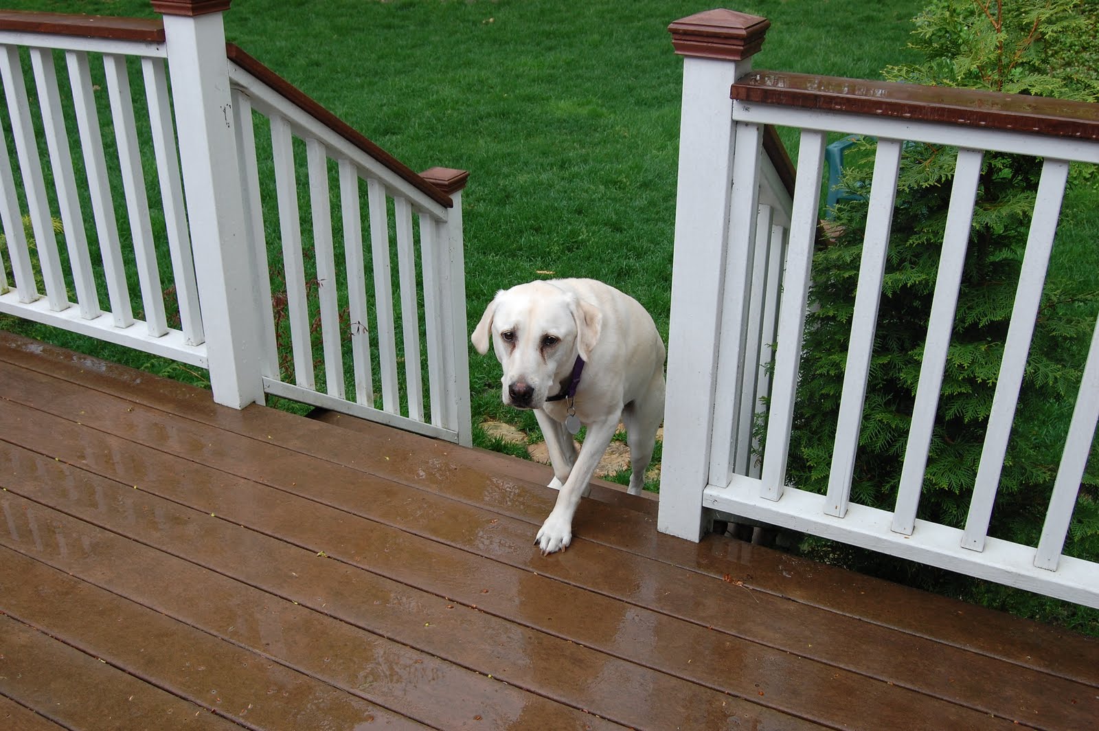 Your not kidding everything in your yard is lush! My gardens are terribly behind, way too soggy for herbs. Your dog looks so sad but cute! ;)