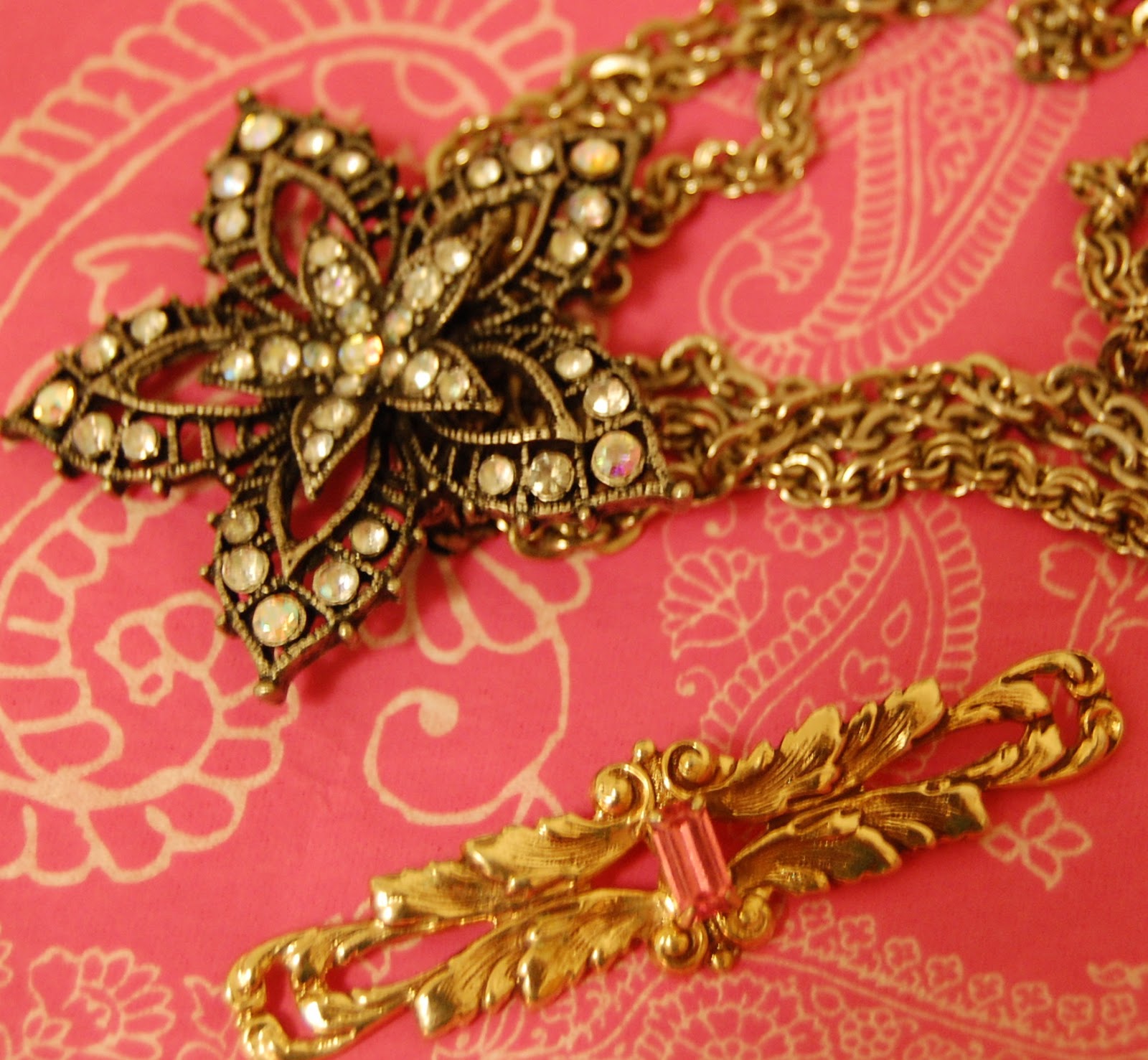 Wow, a $1.00 is a great deal! I think both are very pretty...I especially love the flower pin. Of course, I love bling! :-)