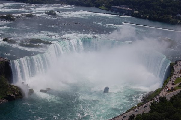 | This was taken from a tower in town. We also went on the Maid-Of-The-Mist. See that tiny boat below! |